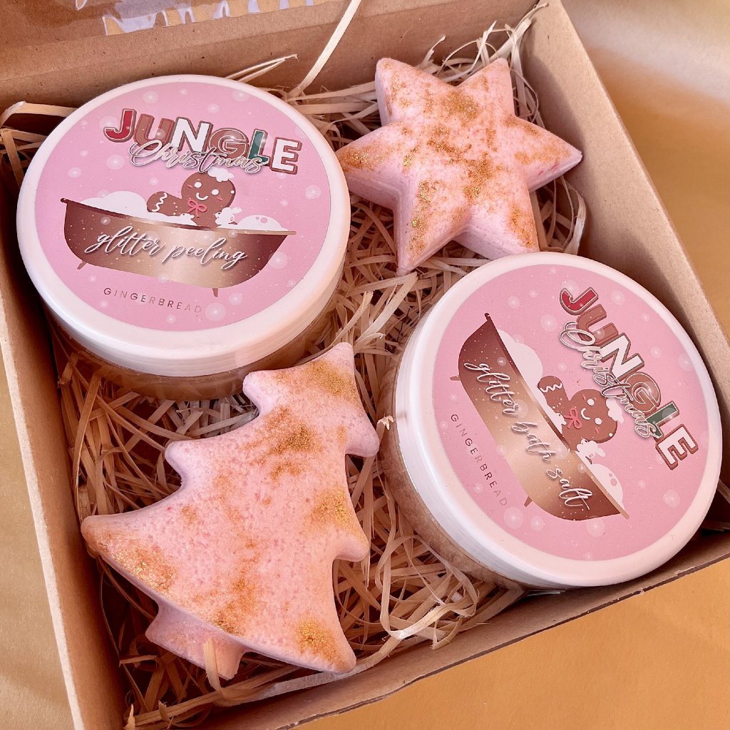 Doprajte si relax s Vianočnou kozmetickou sadou Jungle a ocitnite sa v kúzelnom perníčkovom kúpeli. Hrejivá vôňa perníčkov, jemné bublinky a trblietky vo vani navodia atmosféru Vianoc aj vo vašej kúpeľni. 🎄🍪